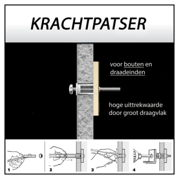 Met het Toggler-hollewandanker M8 bevestigt u voorwerpen aan wanden en plafonds. Denk aan een trapleuning, kast, plafondlamp of radiator. U monteert het hollewandanker snel en eenvoudig in alle plaatdiktes van 10mm tot 92mm, zoals dubbele gipsplaat, houtplaten, vezelplaten en gasbeton van 7cm. Is de ruimte achter de plaat groter dan 52mm? Dan past de het Toggler-hollewandanker altijd. Een hollewandanker heeft een groot draagvlak waardoor het anker in combinatie met een M8-bout zorgt voor stevige bevestiging. Zelfs als de bout eruit gedraaid is, blijft het anker in een holle wand op zijn plek. Hoe vaak u de bout er ook in of uitdraait, de houvast blijft optimaal. De boordiameter bedraagt 20mm en het hollenwandanker M8 kan een maximale belasting van 290kg aan. Uiteraard afhankelijk van het materiaal waarin het anker wordt gemonteerd.