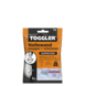 De kunststof Toggler-hollewandplug TB-6 met schroeven, 6 stuks, gebruikt u voor het bevestigen van voorwerpen in plaatmateriaal, zoals gipsplaten of hout- en vezelplaten, van 9 mm tot 13 mm dik. Een hollewandplug (tuimelplug) heeft grote anti-rotatievleugels waardoor de plug niet meedraait wanneer u er een schroef indraait. U monteert de plug in holle wanden met behulp van de bijgeleverde doordrukpen. Hierdoor is montage van de plug eenvoudig en snel voor elkaar. De 9 mm- tot 13 mm-hollewandplug heeft een groot draagvlak achter de plaat en biedt daardoor veel houvast. U kunt de pluggen dan ook tot wel 70 kg belasten, afhankelijk van het materiaal. Met de hollewandplug TB-6 bevestigt u bijvoorbeeld kasten of keukenapparatuur. Deze voorwerpen bevestigt u in combinatie met voldraadschroeven van 3,5 mm tot 6 mm dikte en een minimale lengte van 26 mm plus de dikte van het materiaal. U gebruikt een boormaat van 8 mm. De verpakking bevat 6 TB hollewandpluggen en 6 schroeven van Toggler.