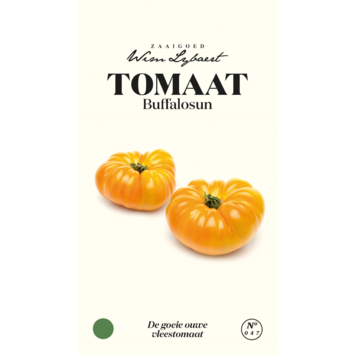Deze vroegrijpe, oude variëteit is een prachtige, stevige vleestomaat. Geel met rode vlammen aan de buitenkant en geelrood gemarmerd vruchtvlees. Deze Buffalosun blinkt uit om zijn fijne smaak. De zoete vruchten kunnen tot 750 gram wegen! Tomaten houden van licht en warmte, hun zaden kiemen pas bij 20°C. Als de zaailingen vier blaadjes hebben, mogen ze naar individuele potjes van 10 à 12 cm. Plant het kleine plantje tot aan de kiemblaadjes in de grotere pot, zodat er al extra wortelscheuten kunnen groeien. Als de eerste bloemen verschijnen, plant je ze uit op 60 cm van elkaar. Zorg eventueel voor een afdakje tegen de regen, want daar houden ze niet van.