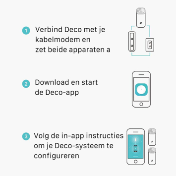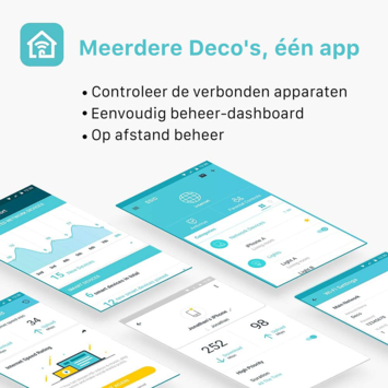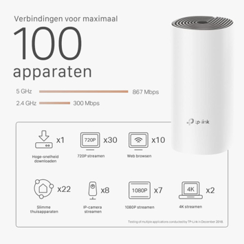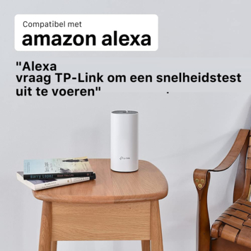 Met de TP-Link Deco E4 is het eenvoudig om overal in jouw woning een sterk wifi-signaal te krijgen. De TP-Link Deco E4 bestaat uit drie losse stations, deze werken samen om een uniform netwerk te vormen. Jouw elektronische apparaten verbinden automatisch met het station die de beste snelheden verzorgt. Het is mogelijk om een Deco-unit toe te voegen aan het uniforme netwerk voor meer dekking.