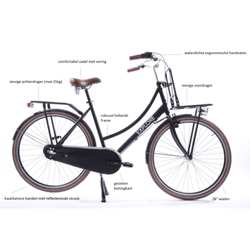 De transportfiets maakt gebruik van een achteruittraprem en is uitgerust met een dubbele standaard en voor- en achterverlichting. Daarnaast heeft de transportfiets drie versnellingen. Kortom, een fiets die geschikt is voor school- en werkverkeer maar ook voor even boodschappen doen.