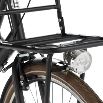 De transportfiets maakt gebruik van een achteruittraprem en is uitgerust met een dubbele standaard en voor- en achterverlichting. Daarnaast heeft de transportfiets drie versnellingen. Kortom, een fiets die geschikt is voor school- en werkverkeer maar ook voor even boodschappen doen.