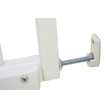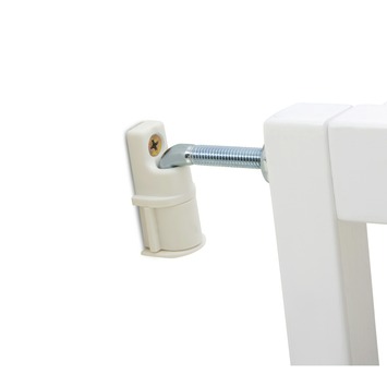 Het Traphekje Liam hout 63-103,5 cm is een voordelig houten traphek in de kleur wit. Je kunt dit hekje gebruiken als traphek of als deurhek. Deze is zelf op eenvoudige wijze te monteren en scharniert in 2 richtingen. Een dubbele vergrendeling en gemakkelijk met één hand te bedienen. Het traphek heeft een vaste hoogte van 75 cm en is in de breedte instelbaar van 63 cm tot 103.5 cm. Het traphekje voldoet aan de strenge eisen voor kindertraphekjes EN-1930:2011 en is geschikt voor kinderen van 0-24 maanden.