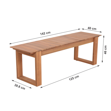De tuinbank Kos is een houten tuinbank van gebeitst acacia hout met een lengte van 142 cm, geschikt voor drie personen. Je gebruikt de bank als zitplek in de tuin, op het terras of onder een overkapping om even te ontspannen of samen te zitten.