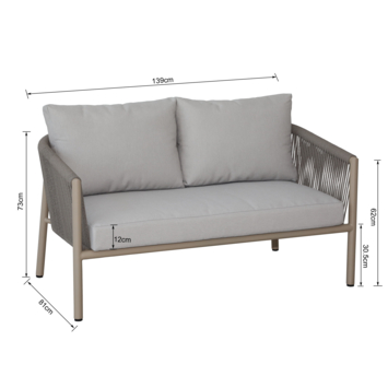 Met een zithoogte van 43 cm en een zitdiepte van 66 cm zit je comfortabel. De zitbreedte van 122 cm biedt genoeg plaats voor twee personen. Het metalen frame is stevig en kan een maximale belasting van 230 kg aan. De kussenslopen zijn afneembaar en wasbaar, wat het onderhoud eenvoudig houdt.