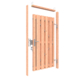 De deur heeft een hoogte van 180 cm, een breedte van 100 cm en een diepte van 5,2 cm. Het ontwerp bestaat uit 11 verticale planken op een metalen frame, wat zorgt voor een robuuste uitstraling en een stijlvolle toegang tot je tuin. Het kozijn is geschaafd, wat het monteren een stuk eenvoudiger maakt.