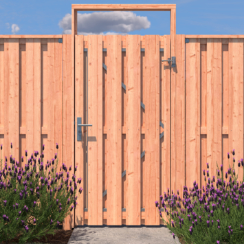 Met het tuindeur pakket Royal Douglas haal je alles in huis voor een stevige en stijlvolle tuindeur voor jouw schutting. Dit complete pakket bevat een robuuste Douglas tuindeur, een luxe RVS deurbeslagset en een eenvoudig te monteren tuindeurkozijn.