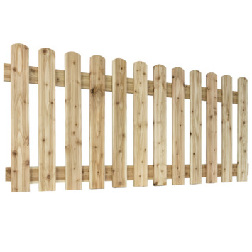 Tuinhek Douglas 80x180 cm is ideaal voor het afscheiden van bijvoorbeeld een voortuin. Het douglashouten hek is 80 centimeter hoog en 180 centimeter breed. Het hek heeft 12 gespijkerde planken. De geschaafde verticale latten zijn aan de bovenkant rond afgewerkt. Het Douglas hout is geschaafd, maar verder onbehandeld. Hoewel de harde naaldhoutsoort Douglas eigenlijk niet gebeitst, geverfd of geïmpregneerd hoeft te worden, kan het wel geschilderd worden naar de gewenste kleur. De kleur van het hout vergrijst na verloop van tijd, dat is een natuurlijk proces.