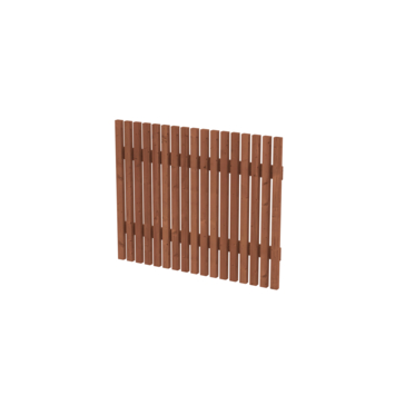 De poort is gemaakt van bruin geïmpregneerd grenenhout en geschaafd voor een strakke en gelijkmatige afwerking. De verticale latten geven de poort een eigentijdse look die uitstekend past bij moderne tuinontwerpen en aansluit bij andere hekwerken.