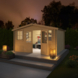 De afsluitbare dubbele deur met lage dorpel zorgt voor een brede doorgang. Naast de deur zit een vast raam dat niet geopend kan worden. De latten voor de 4-vlaks raamverdeling in de deur worden los meegeleverd. Het tuinhuis heeft een zadeldak en wordt geleverd met een basis bitumen dakbedekking. Deze dakbedekking is vooral bedoeld voor tijdelijk gebruik. Voor een langere levensduur wordt het afwerken met dakshingles geadviseerd.
