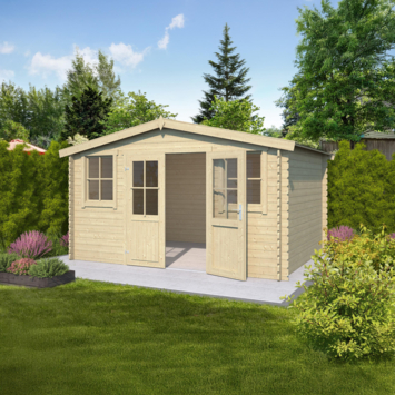 Tuinhuis Dalton vurenhout onbehandeld 276 x 292 cm is een royaal tuinhuis met een traditionele uitstraling, geschikt als opslagruimte in de tuin. Dit tuinhuis is gemaakt van geschaafd vurenhout en wordt onbehandeld geleverd. De wanden bestaan uit massieve balken van 2,8 cm dik die je opbouwt met de stapelbouwmethode. Hierdoor ontstaat een stevige constructie die goed te monteren is voor de gemiddelde doe-het-zelver.