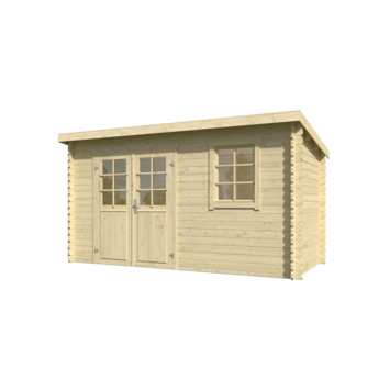Tuinhuis Danna is een praktische en royale blokhut met een moderne uitstraling. Achter de afsluitbare dubbele deur met lage dorpel is bergruimte voor waardevolle spullen en/of tuingereedschap.
