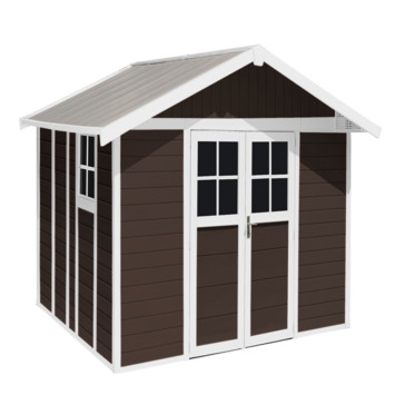 Het Deco 11 Mokka tuinhuis van Grosfillex is meer dan een tuinhuis. Het is eerder een huis in je tuin met een oppervlakte van 11,2 m2 … Het mooie én functionele huisje is gemaakt uit pvc met een houtlook in de kleur wit / mokka en verstevigd met een stalen structuur. Inclusief wanden, deuren en dak die je niet meer hoeft te schilderen. Kortom: de beste oplossing om je tuinspullen op te bergen of - waarom niet? - te gebruiken als extra speelkamer of poolhouse. Ook verkrijgbaar in een kleiner formaat.
