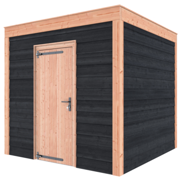 Tuinhuis Douglas hout Zweeds rabat onbehandeld zwart 255 x 255 cm is een compacte tuinberging voor het veilig opbergen van tuingereedschap, fietsen of ander materiaal. Door het vierkante formaat is dit tuinhuis eenvoudig in te passen in verschillende tuinen.