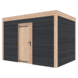 Tuinhuis Douglas hout Zweeds rabat onbehandeld zwart 355 x 255 cm is een compacte tuinberging voor het veilig opbergen van materiaal. De constructie is gemaakt van onbehandeld Douglas hout met stevige staanders en wanden in zwart Zweeds rabat. Dit zorgt voor een afgesloten en overzichtelijke bergruimte.