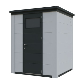 Het tuinhuis Eleganto van Aquaplan is een elegant metalen tuinhuis in de kleur wit. Het tuinhuis is verkrijgbaar in maar liefst 9 verschillende afmetingen, waaronder dit vierkante tuinhuis met aflopend dak van 1,8 op 1,8 meter groot. Het tuinhuis Eleganto beschikt over een enkele deur met 1 raam en is uitzonderlijk goed afgewerkt met onder andere een veilig cilinderslot en een geïntegreerde dakgoot. Het voordeel van een metalen tuinhuis? Makkelijk in elkaar te zetten (én uit elkaar te halen om elders weer in elkaar te zetten), ongelooflijk onderhoudsvriendelijk, stevig, duurzaam en mooi om te zien. Ook verkrijgbaar in de kleur antraciet.