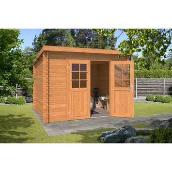Het houten tuinhuis Fresia is gemaakt van Noord-Europees vurenhout in de kleur bruin. Het tuinhuis is rechthoekig (nl. 1 meter 95 op 2 meter 95) en is uitermate geschikt als opbergruimte. Het tuinhuis is uitgerust met een dubbele deur en voorzien van een slot en een raam van glas. Goed om te weten: dit tuinhuis wordt standaard geleverd inclusief dakleer, dakverankering, hang- en sluitwerk evenals een duidelijke opbouwbeschrijving. Ook verkrijgbaar in vurenhout behandeld met beits in de kleur groen. Buitenafmeting: