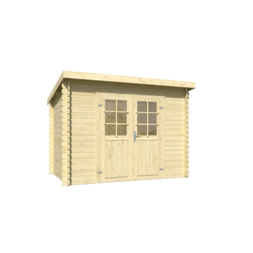 Dit tuinhuis is gemaakt uit geschaafd, maar verder onbehandeld Noord-Europees vurenhout. Dat vergt wat meer onderhoud dan gedompeld of geïmpregneerd hout of hout met een coating. Onbehandeld hout dien je namelijk zelf een goede basis te geven door het te behandelen. Daarna dien je het uiteraard, net als met voor behandeld hout, regelmatig te onderhouden om de levensduur van het huisje te verlengen. Het tuinhuisje impregneer, beits of verf je zowel aan de buiten- als binnenkant. Extra aandacht dien je te besteden aan deuren en ramen, want die zijn veruit het meest kwetsbaar. Het voordeel van onbehandeld hout is dat je zelf kan kiezen hoe je het wil afwerken en in welke kleur.