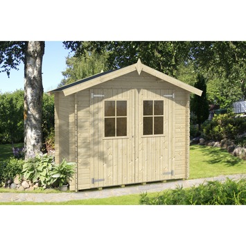 Dit tuinhuis is gemaakt uit geschaafd, maar verder onbehandeld Noord-Europees vurenhout. Dat vergt wat meer onderhoud dan gedompeld of geïmpregneerd hout of hout met een coating. Onbehandeld hout dien je namelijk zelf een goede basis te geven door het te behandelen. Daarna dien je het uiteraard, net als met voor behandeld hout, regelmatig te onderhouden om de levensduur van het huisje te verlengen. Het tuinhuisje impregneer, beits of verf je zowel aan de buiten- als binnenkant. Extra aandacht dien je te besteden aan deuren en ramen, want die zijn veruit het meest kwetsbaar. Het voordeel van onbehandeld hout is dat je zelf kan kiezen hoe je het wil afwerken en in welke kleur.