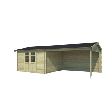 Tuinhuis Joost is een prachtige, ruime blokhut met een royale overkapping. Onder de overkapping is het heerlijk vertoeven. Het afgesloten gedeelte van deze blokhut is geschikt als bergruimte voor bijvoorbeeld waardevolle spullen en/of tuingereedschap.