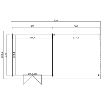 Dit tuinhuis is voorzien van een zadeldak. Dit zadeldak geeft door de hoogte van de nok een mooie en ruimtelijke beleving onder de overkapping. De hoge deuren met lage dorpel maken het gemakkelijk om spullen, zoals bijvoorbeeld een fiets, in het tuinhuis te plaatsen. De latten voor de 6-vlaks raamverdeling op de ruit in de deur worden los meegeleverd.