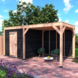 Tuinhuis met overkapping Douglas hout Zweeds rabat onbehandeld zwart 545 x 255 cm