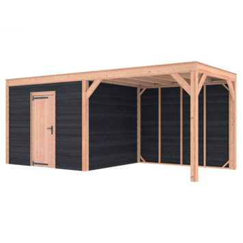 Tuinhuis met overkapping Douglas hout Zweeds rabat onbehandeld zwart 595 x 255 cm