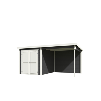 Het tuinhuis Finn 450x250 heeft een fundamentmaat van 450 cm(b) x 250 cm(d). De massieve 28 mm dikke vurenhouten wanddelen zijn uitgevoerd met mes en groef. De stapelbouw methode in combinatie met hoekpalen en schroefsysteem zorgt voor een zeer sterke constructie. Dit moderne en strak vorm gegeven tuinhuis met haar dubbele dichte deur is bijzonder geschikt als berging voor uw tuinspullen met daarbij een overkapping om ook heerlijk beschut te kunnen chillen. Het basispakket wordt geleverd inclusief een duidelijk montagehandleiding, onderdelenlijst en uiteraard alle benodigde bevestigingsmaterialen, zoals het deurbeslag. Voor langdurig plezier van uw tuinhuis, wordt aangeraden een EDPM dakbedekkingpakket aan te kopen om waterdichtheid te verzekeren. Het stapelbare blokhut systeem is door de handige doe-het-zelver prima zelf te monteren en dit tuinhuis wordt als bouwpakket bij u thuis geleverd.