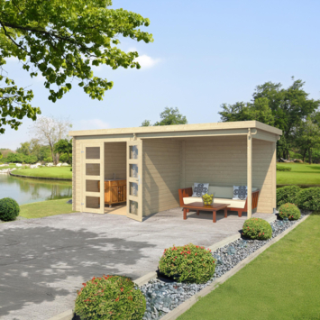 Tuinhuis met overkapping Helena vurenhout onbehandeld 492 x 254 cm