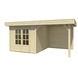 Dit tuinhuis is opgebouwd uit onbehandeld hout. Dat vergt wat meer onderhoud dan gedompeld hout of hout met een coating. Onbehandeld hout dient zelf behandeld en onderhouden te worden. Het tuinhuisje moet aan de binnen- en buitenkant nauwkeurig behandeld zijn. Extra aandacht gaat uit naar deuren en ramen, want die zijn veruit het kwetsbaarst. Het voordeel van onbehandeld hout zit hem in de afwerking. Je behandelt het hout dan zelf op een manier die past bij wat je voor ogen hebt i.v.m. bijvoorbeeld schilderen.