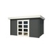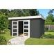 Dit tuinhuis is opgebouwd uit antraciet gecoat hout. De coating biedt buiten een strakke afwerking in een moderne kleur ook een beschermende laag. Het betekent echter niet dat het hout onderhoudsvrij is. Ook gecoat hout dient onderhouden te worden. In de loop van tijd moeten de beschadigde puntjes bij getipt worden en na 5-8 jaar behandel je het huisje opnieuw. Het tuinhuisje moet dan aan de buiten- en binnenkant nauwkeurig behandeld worden. Extra aandacht gaat uit naar deuren en ramen, want die zijn veruit het kwetsbaarst.