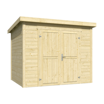 Het tuinhuis Mila 250x200 heeft een fundamentmaat van 250 cm(b) x 200 cm(d). De massieve 28 mm dikke vurenhouten wanddelen zijn uitgevoerd met mes en groef. De stapelbouw methode in combinatie met hoekpalen en schroefsysteem zorgt voor een zeer sterke constructie. Dit moderne en strak vorm gegeven tuinhuis met haar dubbele dichte deur is bijzonder geschikt als berging voor uw tuinspullen. Het basispakket wordt geleverd inclusief een duidelijk montagehandleiding, onderdelenlijst en uiteraard alle benodigde bevestigingsmaterialen, zoals het deurbeslag. Dit tuinhuis wordt zonder dakbedekking geleverd, hiervoor is optioneel een EPDM dakbedekking pakket bestelbaar. Het stapelbouw blokhut systeem is door de handige doe-het-zelver prima zelf te monteren en dit tuinhuis wordt als bouwpakket bij u thuis geleverd.