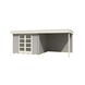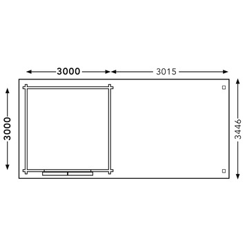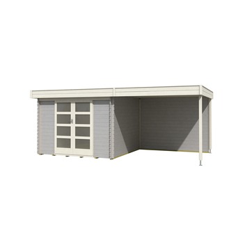 Het houten tuinhuis Minnesota is gemaakt van Noord-Europees vurenhout in de kleur platinum grijs. Het tuinhuis met overkapping is 3 op 3 meter groot en 2 meter 38 hoog. Je kan de overkapping links of rechts van je tuinhuis plaatsen. Kies voor dit tuinhuis als je op zoek bent naar een bergruimte met een dubbele schuifdeur met een slot, een raampje van kunststof én een plek om overdekt te chillen. Goed om te weten: dit tuinhuis wordt standaard geleverd inclusief dakleer, dakverankering, hang- en sluitwerk evenals een duidelijke opbouwbeschrijving. Ook verkrijgbaar in vurenhout behandeld met beits in andere kleuren. Buitenafmeting: Dakmaat: 625x345 cm. Nokhoogte: 238 cm. Binnenafmeting: Binnenafmeting: 294,4 x 294,4 cm. Nokhoogte binnen: 223 cm. Zijwandhoogte: 230 cm. Wanddikte: 28 mm. Fundamentmaat: 599x300 cm. Oppervlakte: 8,7 m². Hoogte deur: 188,5 cm. Breedte deur: 139 cm.