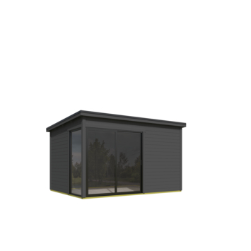 Dit modern vormgegeven tuinhuis Olivia heeft een fundamentmaat van 385 cm(b) x 295 cm(d). De 28 mm dikke vurenhouten wanddelen zijn uitgevoerd met mes en groef. De stapelbouw methode in combinatie met hoekpalen en schroefsysteem zorgt voor een zeer sterke constructie. Dit mooie design tuinhuis wordt geleverd inclusief een aluminium schuifpui in de voorwand waarvan beide panelen schuivend zijn en het linker paneel afsluitbaar is met een sleutel. In de linkerzijde wordt een vast aluminium glaspaneel gemonteerd. De aluminium delen zijn mat antracietgrijs van kleur en de panelen zijn voorzien van enkelglas. Dit tuinhuis is door de enorme lichtinval ook geschikt als tuinkamer, atelier of als tuinkantoor. U kunt dit tuinhuis ook in spiegelbeeld monteren. Het basispakket wordt geleverd inclusief montagehandleiding, onderdelenlijst en uiteraard alle benodigde bevestigingsmaterialen. Dit tuinhuis wordt zonder dakbedekking geleverd, hiervoor is optioneel een EPDM dakbedekking pakket bestelbaar. Dit stapelbouwbouw systeem is door een handige doe-het-zelver goed zelf te monteren, je moet wel even met z'n tweeën zijn. Dit tuinhuis wordt als bouwpakket bij u thuis geleverd.