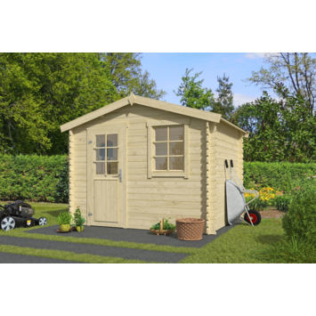 Dit tuinhuis is gemaakt uit geschaafd, maar verder onbehandeld Noord-Europees vurenhout. Dat vergt wat meer onderhoud dan gedompeld of geïmpregneerd hout of hout met een coating. Onbehandeld hout dien je namelijk zelf een goede basis te geven door het te behandelen. Daarna dien je het uiteraard, net als met voor behandeld hout, regelmatig te onderhouden om de levensduur van het huisje te verlengen. Het tuinhuisje impregneer, beits of verf je zowel aan de buiten- als binnenkant. Extra aandacht dien je te besteden aan deuren en ramen, want die zijn veruit het meest kwetsbaar. Het voordeel van onbehandeld hout is dat je zelf kan kiezen hoe je het wil afwerken en in welke kleur.