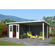 - Exclusief bijbehorende accessoires: Vloer of funderingsbalken, dakgootset en shingles