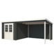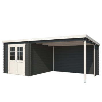Dit tuinhuis is opgebouwd uit antraciet gecoat hout. De coating biedt buiten een strakke afwerking in een moderne kleur ook een beschermende laag. Het betekent echter niet dat het hout onderhoudsvrij is. Ook gecoat hout dient onderhouden te worden. In de loop van tijd moeten de beschadigde puntjes bij getipt worden en na 5-8 jaar behandel je het huisje opnieuw. Het tuinhuisje moet dan aan de buiten- en binnenkant nauwkeurig behandeld worden. Extra aandacht gaat uit naar deuren en ramen, want die zijn veruit het kwetsbaarst.