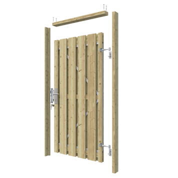 Het tuindeurpakket recht grenen geschaafd geïmpregneerd groen op metalen frame bestaat uit: