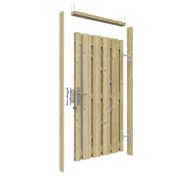 Tuinpoort pakket recht op metalen frame grenen hout 5,5 x 90 x 180 cm