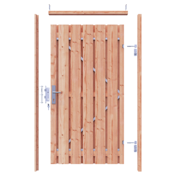 Het tuindeurkozijn Douglas met aanslaglat is universeel. Dit betekent dat deze ingezet kan worden tot en met een maximale breedte van 160 cm. Houd in dit tuindeurpakket een poortbreedte van 110 cm aan tussen de twee staanders. De set bestaat uit 3 regels, waarvan 1 verticale regel met aanslaglat is uitgevoerd. Het tuindeurkozijn wordt als bouwpakket, inclusief bevestigingsmateriaal geleverd. Met de meegeleverde montagehandleiding kan het kozijn opgebouwd worden.