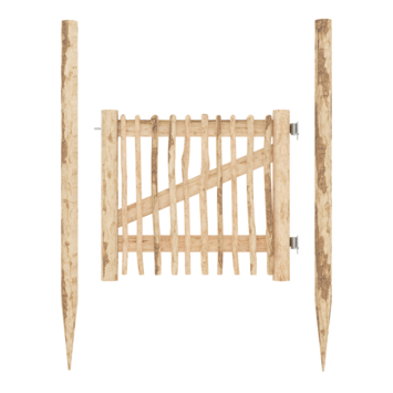 De tuinpoort is vervaardigd uit geschild kastanjehout, wat niet alleen mooi is, maar ook een natuurlijke uitstraling heeft die perfect in je tuin past. Aangezien de poort onbehandeld is, kun je ervoor kiezen om deze zelf te behandelen of het hout de tijd geven om op een natuurlijke manier te vergrijzen voor een nog authentiekere look.