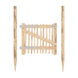 Met de tuinpoort Theems kastanje onbehandeld haal je een prachtige en stevige toegangspoort voor je tuin in huis. De poort heeft een hoogte van 90 cm, een breedte van 100 cm en een diepte van 12 cm. Het ontwerp bestaat uit 2 horizontale latten, 1 schoor en 9 gepunte kastanje planken, wat zorgt voor een robuuste en betrouwbare constructie.