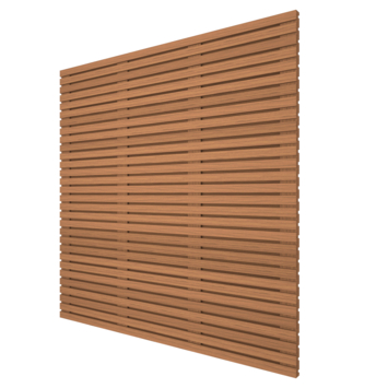 Verrijk je tuin met een thermisch gemodificeerd ayous lattenscherm. Baad in luxe met deze prachtige eyecatcher! Een eigentijdse combinatie van strakke lijnen en egale look. Het ayous is thermisch gemodificeerd dat de volgende voordelen met zich meebrengt. Het hout is erg duurzaam en gaat gemiddeld 15 tot 20 jaar mee. Het is licht van gewicht doordat er veel vocht uit het hout is onttrokken, ook werkt het hout hierdoor nagenoeg niet. Doordat het hout zachter is, is het gemakkelijk te bewerken. Het lattenscherm Andalusië is 180 cm hoog, 180 cm breed en 4,2 cm diep. Het scherm bestaat uit 59 latten, 2 U-profielen en 4 latten die aan elkaar bevestigd zijn. Het lattenscherm is vanaf één zijde geschroefd waardoor het scherm een voor- en achterkant heeft. Zowel boven als onder heeft het scherm een U-profiel. Dit komt de stevigheid van het scherm ten goede en zorgt ervoor dat het scherm zowel horizontaal als verticaal te monteren is. Het lattenscherm heeft een bijpassende tuindeur Andalusië. Afhankelijk van de plaatsingsrichting is er een horizontale of verticale tuindeur verkrijgbaar. Het combineren van deze 2 artikelen zorgt voor een mooi geheel.