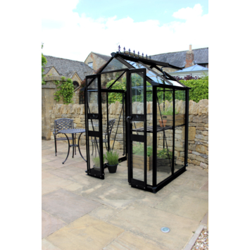 Tuinserre Royal Well Birdlip 44 zwart gecoat met 3 mm veiligheidsglas