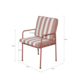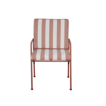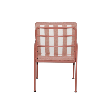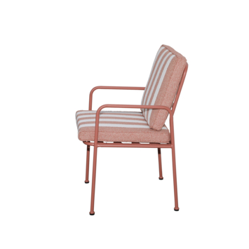 Het terracotta frame valt op en geeft de stoel een warme uitstraling. Het rood wit gestreepte kussen kan je afnemen en wassen, wat handig is na veel gebruik. Zo heb je een praktische tuinstoel die je elke dag kan inzetten.