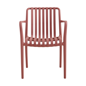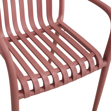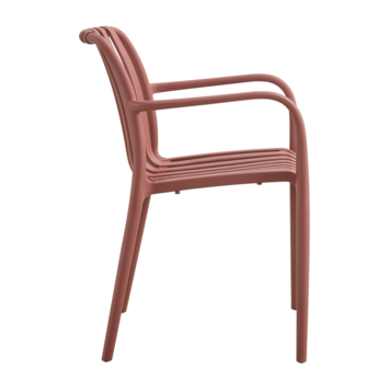 De tuinstoel wordt kant-en-klaar geleverd, zodat je onmiddellijk kunt genieten van je nieuwe zitplek. Kussens zijn niet inbegrepen, maar kunnen gemakkelijk worden toegevoegd voor extra comfort. De terracotta kleur van het kunststof biedt een warme, uitnodigende uitstraling die goed past bij verschillende tuin- en terrasstijlen.