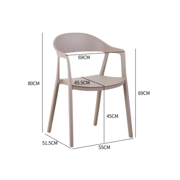 Met een zithoogte van 45 cm zit je comfortabel aan tafel. De zitbreedte van 47 cm en zitdiepte van 48 cm zorgen voor een ruime en stabiele zit. De armleuningen op 69 cm hoogte geven extra steun wanneer je langer blijft zitten.