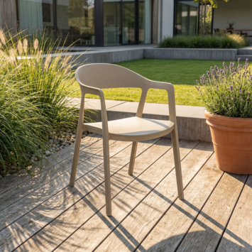 De tuinstoel Gili in zandkleur heeft een strakke, eigentijdse uitstraling die perfect past in elke tuin. Met een zithoogte van 45 cm biedt deze stoel een comfortabele zitervaring. Het kunststof materiaal garandeert niet alleen comfort, maar is ook eenvoudig te onderhouden. Bovendien is de stoel stapelbaar, wat het opbergen vergemakkelijkt wanneer hij niet in gebruik is.