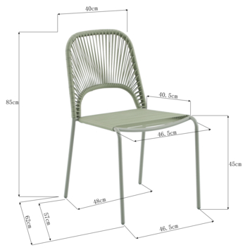De tuinstoel Tim in groen is een perfecte balans tussen kracht en design. Het metalen frame biedt robuustheid en stabiliteit, waardoor je zorgeloos van je tuin kunt genieten. Daarnaast is de zitting vervaardigd uit hoogwaardig kunststof, wat niet alleen bijdraagt aan het lichte gewicht van de stoel, maar ook eenvoudig te reinigen is.