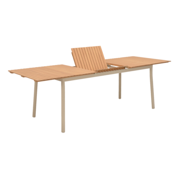 Met een tafelblad van 181,5 cm (uitschuifbaar tot 238,5 cm) en een breedte van 90 cm biedt de tuintafel Daan ruime zitplaatsen voor een groot gezelschap. De hoogte van de tafel is 75,3 cm. Het blad is gemaakt van light oak geolied eucalyptus hout en het onderstel is uitgevoerd in coral sand gecoat metaal, wat zorgt voor een stevige en moderne uitstraling. De tafel wordt geleverd als bouwpakket, wat betekent dat je hem snel en eenvoudig zelf kunt monteren. Kies voor de tuintafel Daan en geniet van een flexibele en stijlvolle tafel in je tuin.